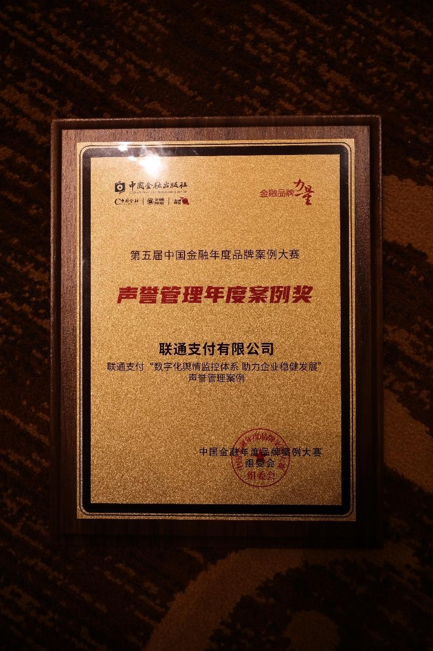 近日,中國金融品牌年會暨第五屆中國金融年度品牌案例大賽頒獎典禮在北京圓滿落幕。本次大賽中,聯通支付有限公司(簡稱“聯通支付”)憑借《數字化輿情監控體系助力企業穩健發展聲譽管理案例》榮獲聲譽管理年度案例獎,聯通支付已蟬聯四次該獎項。