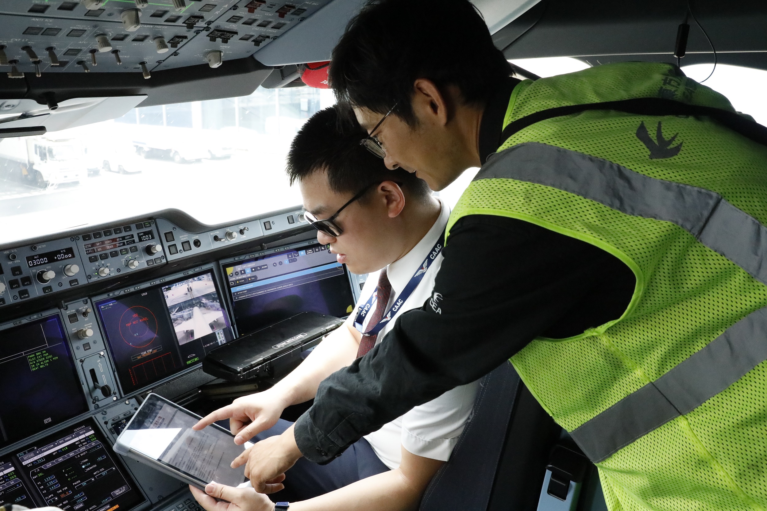 東航A350飛行行組與機務工程師對飛行適航狀態進行確認