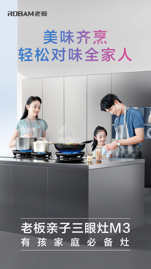 老板電器聚焦中式烹飪44年,一直堅定的站在用戶角度,洞察需求,降低烹飪門檻,讓用戶喜歡烹飪、享受烹飪。老板電器發(fā)布的老板親子三眼灶M3 ,正是基于家庭用戶需求打造,為多口之家?guī)眢@喜。相信老板電器未來會繼續(xù)以創(chuàng)新科技創(chuàng)造中國新廚房,引領人類烹飪生活方式變革,創(chuàng)造人類對廚房生活的一切美好向往。