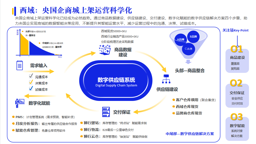 對于供應商來說,為用戶提供供應鏈服務是基礎(chǔ)能力,但供應鏈的“精細化”運營才是考驗供應商的核心能力。例如:西域依托平臺積累和沉淀大量的用戶、商品和交易數(shù)據(jù),提供精細化的數(shù)據(jù)、商品、庫存和交付的運營服務,進行深度的數(shù)據(jù)治理,幫助用戶精選優(yōu)質(zhì)商品和智能備貨。