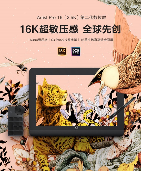 此前,市場上的數字繪畫產品主要是由8192級壓感為主導。為了給用戶帶來更為極致的數字繪寫體驗,今年XPPen研發出全球首創16K超敏壓感(16384級超敏壓感統稱16K超敏壓感),壓感由原來的8192級別直接提高至16384級別,實現了100%躍級,開創了行業最高標準,成功突破海外技術壁壘,引領全球數字繪寫行業發展。