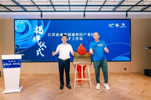 王洪波與袁岳為園區引才工作站揭牌。