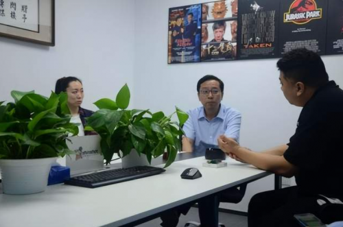 中國(guó)電影進(jìn)出口有限公司總經(jīng)理劉春先生認(rèn)真聽取閃梭傳媒總裁南光(James Nan)先生匯報(bào)相關(guān)工作