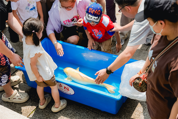 此次共邀請了150組家庭共同參與儀式,親手放下錦鯉,許下美好心愿,收獲祝福與好運。