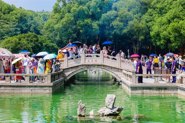 整場活動人頭攢動,現場一派熱鬧景象。錦鯉寄托著人們的美好祝福,在池內搖曳身姿,靈山勝境內從此又添一份生機、又添一處祈福之地。