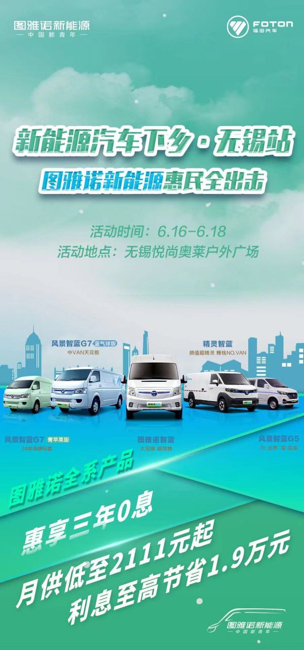 6月16日,2023年全國新能源汽車下鄉啟動儀式在江蘇無錫惠山盛大召開,福田圖雅諾攜風景智藍G7和精靈智藍E7強勢亮相,展示創新成果和實體經濟的深度融合,助力鄉村振興,為生態可持續發展貢獻力量。