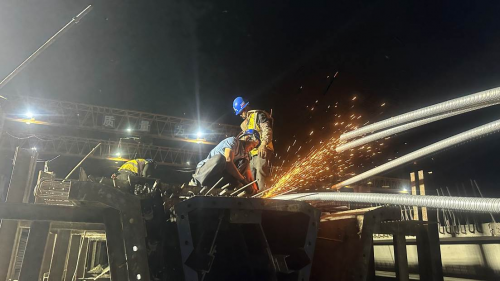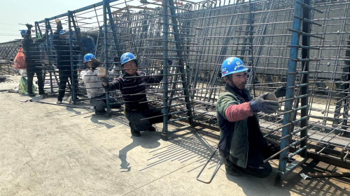 門吊機器轟鳴,工人們正忙著綁扎鋼筋、安裝模板、澆筑混凝土,濱淮高速BH7標項目施工現場一派忙碌景象。“五一”假期,中鐵七局集團第三工程有限公司260余名建設者奮戰在施工一線,為了加快施工生產進度,現場工人們頂著灼灼烈日正如火如荼、緊鑼密鼓的掀起一番大干的施工熱潮。他們堅守崗位、默默奉獻,用勞動者最美的身影為自己的節日增添色彩。