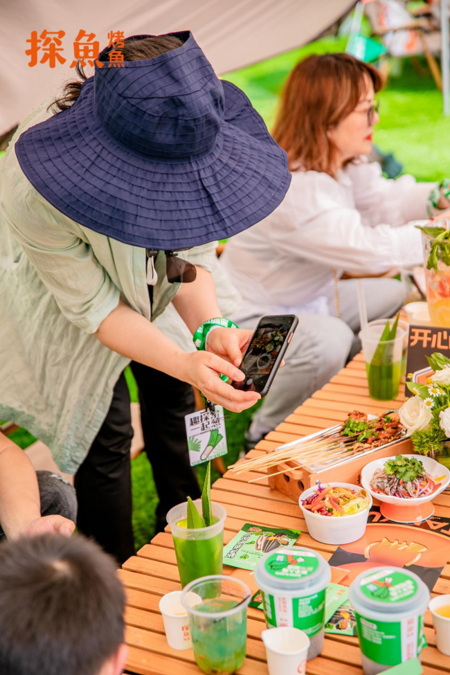 本次探魚露營品鑒會,探魚準備了四月推出的新品——鮮青椒蔥蔥烤魚。新鮮的紅蔥搭配整根新鮮大蔥,讓香蔥+藤椒味型的鮮青椒蔥蔥烤魚爽麻加蔥香雙重過癮;搭配系列新品現場體驗十分豐富:活力滿滿的飲品斑斕的綠,搗搗搗釋放壓力的小吃牛油果擂椒皮蛋,和口感脆爽治愈的輔菜鮮箭筍。品鑒會更設置了可以無限續加的自助暢飲區,大好春光環繞之下,到場嘉賓沉浸式體驗到美食品鑒之樂,新產品獲得大家一致喜愛,紛紛拍照打卡,解鎖探魚露營美食之旅。