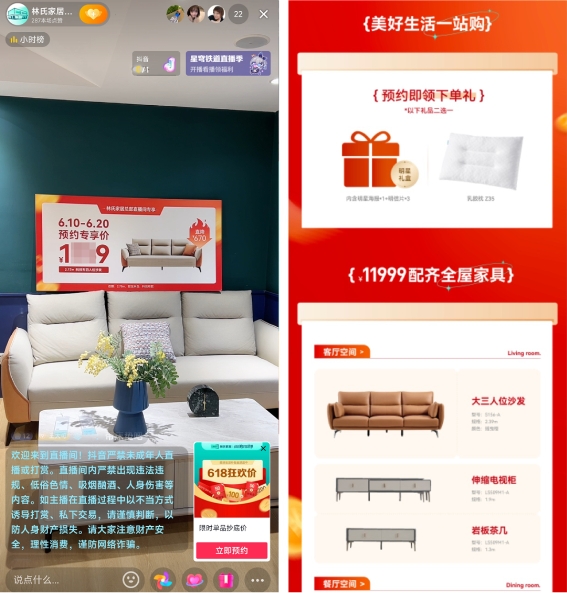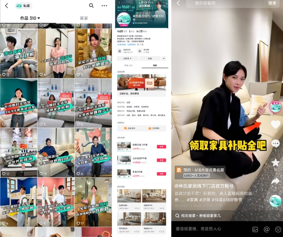 面對激烈的行業競爭,林氏家居提前一個月開始籌備大促活動,以抖音為線上核心陣地,特別推出"618美好生活季" 主題活動,參加抖音官方活動,獲得平臺多重曝光資源的加持。通過廣泛曝光,林氏家居得以持續搶占多圈層目標用戶的注意力,提升品牌影響力。