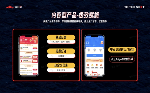 ▎對于非內容型產品,?開發者可基于穿山甲在小視頻、直播、短劇等多種內容資源,借助一系列廣告賦能產品,優化流量布局,將存量用戶的變現arpu進一步增加。