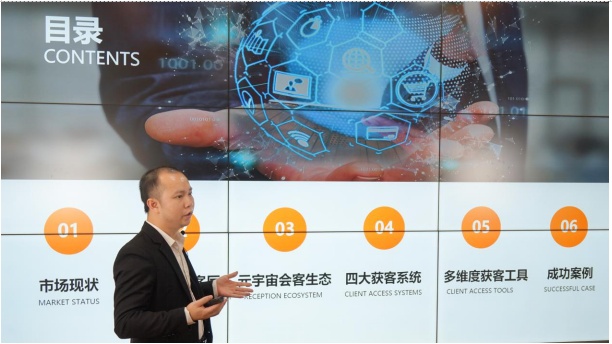 關于云展動力及鴻威元宇宙會客廳,鴻威集團云展動力負責人陳良玉介紹道,云展動力精準獲客平臺歷經多年打磨,現已集合了數字孿生云展系統、大數據獲客系統、精準邀約系統、客戶管理系統,形成了有效的智能獲客生態。針對“幫助企業獲客”的核心問題,云展動力重磅推出了元宇宙會客廳,能夠完美復刻企業實景,讓精準客戶不受時空限制,隨時隨地進入云展廳參觀,完成逛展會、看產品、游產線等實時互動操作,助力參展企業實現高效獲客,為國際采購商尋求優質供應服務商創造條件。