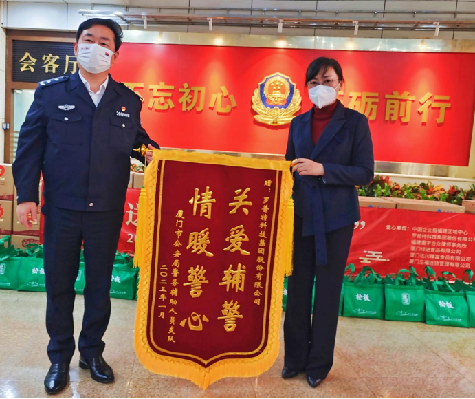 由中國企業報福建公司發起的“2023愛心年夜飯送輔警活動”第三個中國人民警察節當天在廈門市公安局大院隆重舉行,來自羅普特科技集團股份有限公司、福建重宇合眾律師事務所、廈門綠進食品有限公司、廈門達川臻富食品有限公司、廈門見福連鎖管理有限公司等愛心企業為廈門輔警支隊一線輔警送來了節日的問候和預制菜、油、果汁等愛心年夜飯“大禮包”,以及口罩等防疫物資,向奮斗在在一線守護廈門城市平安的執勤輔警表示感激和敬意。