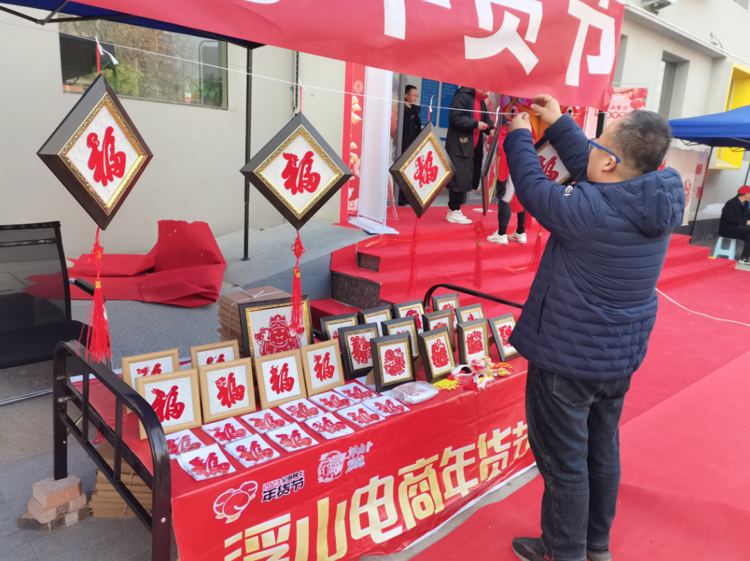 同時,浮山縣電商服務中心在室外為浮山縣14家農特產品企業免費提供攤位,開展了農產品、生活用品、過年禮品等展銷會,增加浮山縣年貨節的氛圍,讓浮山的優質農產品被更多的人看見,浮山縣書法家協會也來助力電商年貨節,現場書寫福字、對聯兩百余副,無償送給百姓。