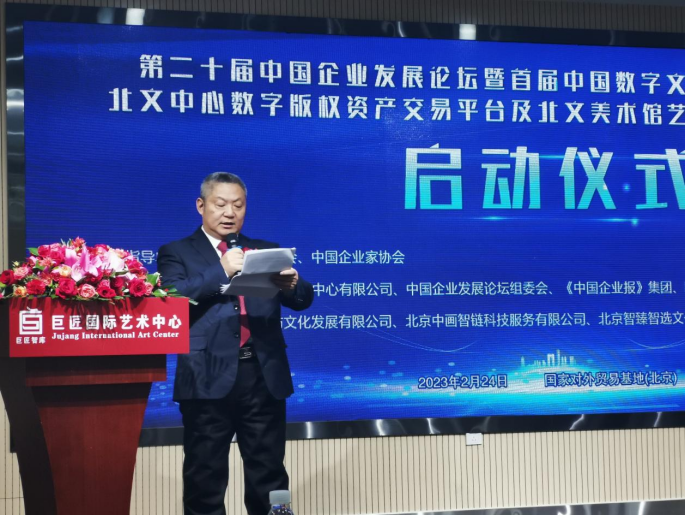 2023年2月24日,第二十屆中國(guó)企業(yè)發(fā)展論壇暨首屆中國(guó)數(shù)字文化產(chǎn)業(yè)投資高峰論壇啟動(dòng)儀式在國(guó)家對(duì)外文化貿(mào)易基地(北京)舉行。與此同時(shí),北文美術(shù)館藝術(shù)品交易服務(wù)平臺(tái)、北文中心數(shù)字版權(quán)資產(chǎn)發(fā)行平臺(tái)啟動(dòng)儀式也如期舉辦。