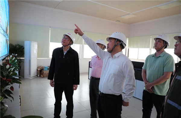 郭成戰部長一行實地參觀了谷城礦業的中控室、二號制砂樓控制臺、運輸車輛調度室、產品展覽室、黨建室。