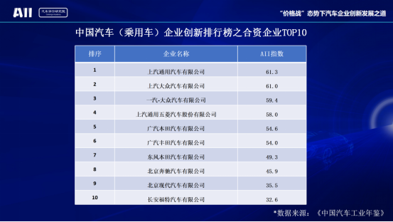 中國汽車(乘用車)企業創新排行榜之合資企業TOP10