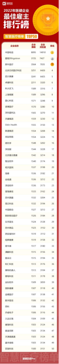 為向這些企業致敬,健康凱歌發起了“2022年第二屆醫健凱歌最佳雇主排行榜”評選活動,經過12月1日-7日的企業征集,12月8日—21日的公開投票,活動累計訪問量***,總票數***。