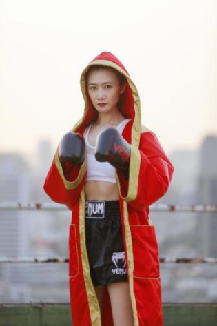 于是我在想如果是參加比賽的話,那么就有可能會遇到在全球范圍之內能跟我有同樣量級的職業拳擊手。果不其然,這一次去泰國比賽就遇到了Siritorn,她也是108磅量級的職業拳擊手,從小訓練泰拳,所以經由這我就開啟了自己的職業比賽之路。我覺得拳擊比賽對我來講就是一次拳擊的集中檢驗,7年訓練的結果,將在這一次的比賽當中完成一次考試。