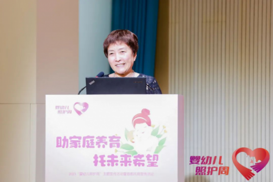 ▲國家衛生健康委婦幼健康司副司長沈海屏做《兒童早期發展與嬰幼兒養育照護》主旨報告