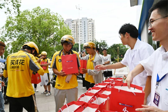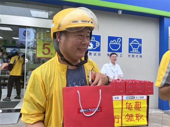 7月6日,全億大藥房為備受“烤”驗的騎手們送上防暑大禮包。