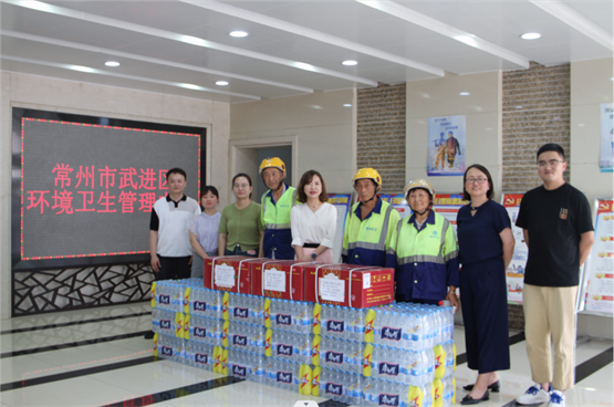 全億健康常州分部總經理張云向辛勤工作的環衛工們送上誠摯的問候,再三叮囑夏季高溫天氣,大家要時刻注意身體狀況,做好防暑降溫和防疫工作,感謝他們用勤勞的雙手為我們營造了整潔、舒適的環境。