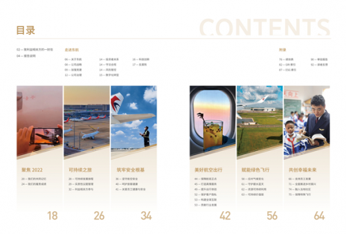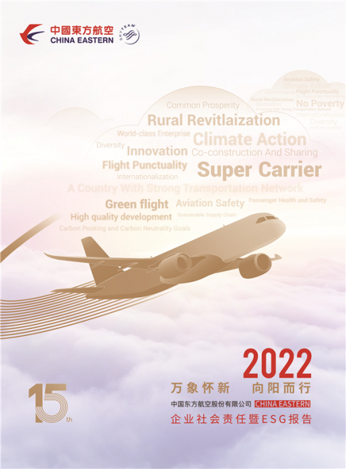 向陽而行”為主題,從“筑牢安全根基”、“美好航空出行”、“賦能綠色飛行”、“共創幸福未來”四個主題篇章,系統展示東航2022年在環境、社會、經濟等方面的履責態度和履責成效。