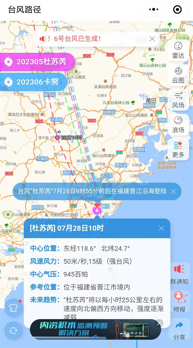 超強(qiáng)臺(tái)風(fēng)“杜蘇芮”于2023年7月21日上午在西北太平洋洋面生成,于7月25日被中央氣象臺(tái)升至17級(jí)以上(62米/秒);于7月28日9時(shí)55分前后以強(qiáng)臺(tái)風(fēng)級(jí)(50米/秒)在福建省晉江市沿海登陸,成為有完整記錄以來登陸福建泉州的最強(qiáng)臺(tái)風(fēng),并已對(duì)福建泉州、晉江等城市造成嚴(yán)重影響。