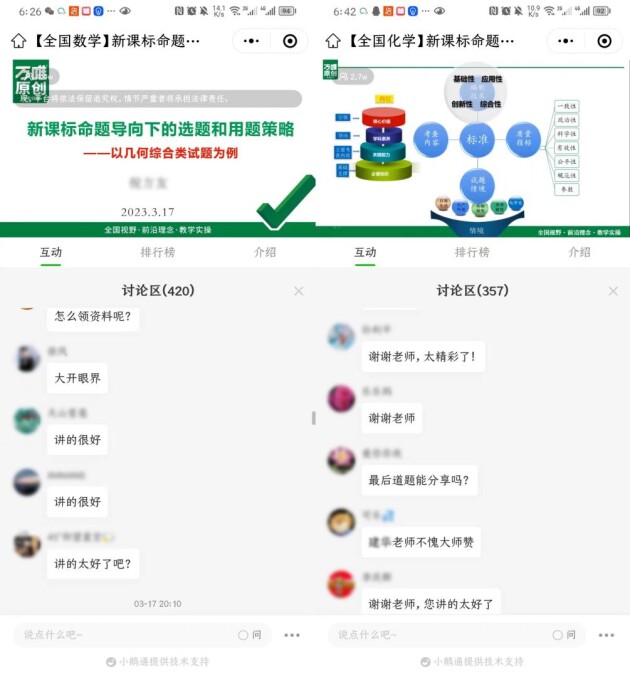 3月17日,萬唯特邀全國中考命題前沿省市專家,以新課標(biāo)導(dǎo)向為切入點(diǎn),聚焦“好題”在二輪復(fù)習(xí)的使用場景,通過對中考命題評估和全國考改趨勢的分析、好題選用標(biāo)準(zhǔn)的闡述等,策劃中考七科(不含地理、生物學(xué))公益?zhèn)淇贾辈フn。內(nèi)容針對性、實(shí)用性強(qiáng),吸引了超20萬人次老師觀看,對老師的教學(xué)和備考有非常積極的指導(dǎo)作用。