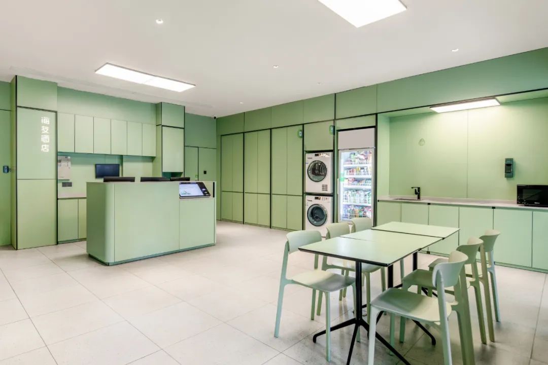 值得關注的是,海友6.0大堂公區(qū)強化了自助入住、自助洗衣、自助寄存、自助餐飲等多種自助化服務設施,大幅提升酒店空間的利用率和運營效率,牢牢抓住了新一代消費者群體的真實需求。