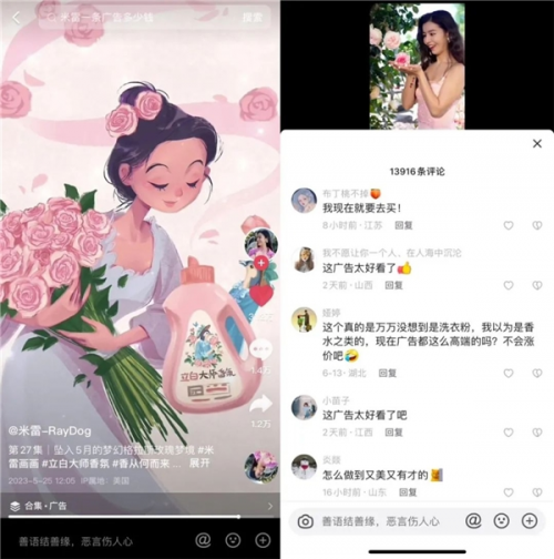 “最高級的抖音廣告,沒有之一。”一位來自廣東的用戶,在一條女漫畫家“米雷”發布的短視頻下方評論道。