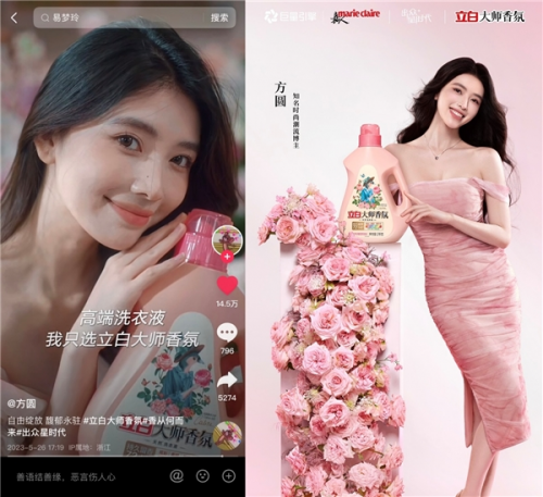 再加上與時尚媒體《嘉人》的合作,使得立白大師香氛品牌和抖音頭部達人都獲得了更為有力的時尚背書。