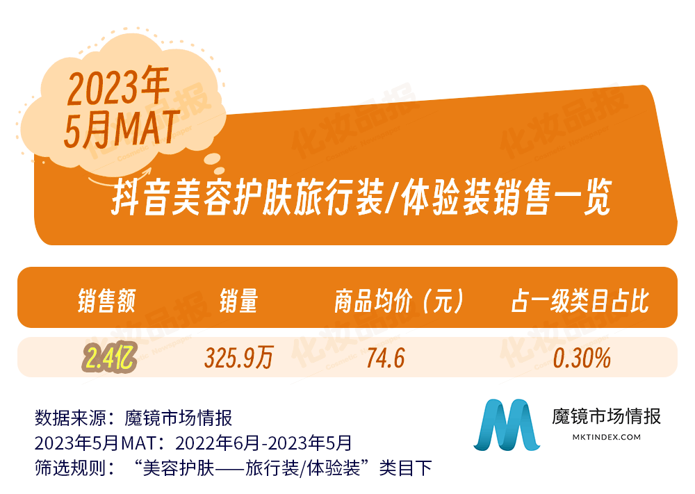 近日,國內零售洞察公司魔鏡市場情報發布了一份關于化妝品旅行裝/體驗裝在各主流電商平臺的銷售調研報告。報告統計的類目主要針對彩妝、香水、美妝工具、美容護膚、美體和精油類旅行裝/體驗裝,統計調查的平臺涵蓋淘寶、天貓、抖音等,統計周期為2022年6月-2023年5月。