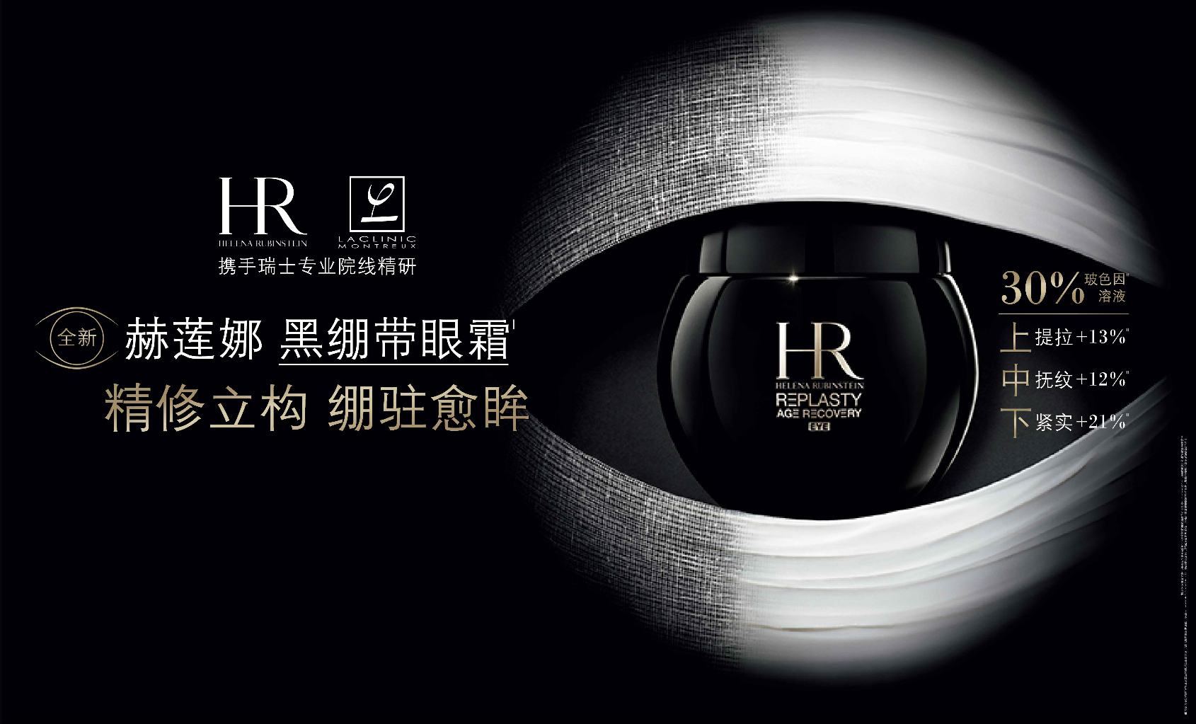 2023年,延續(xù)“美容繃帶”研發(fā)思路,赫蓮娜與LACLINIC-MONTREUX再創(chuàng)繃帶新篇,量眼定制全新護理杰作,帶來業(yè)界首款聯(lián)合定制的眼周修護式抗老眼霜,全新赫蓮娜黑繃帶眼霜,以革新配方攻克護眼難題,降維打擊日常眼周修護問題,立體精修,繃駐雙眸。