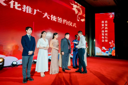 在發布會期間,小角樓與多方合力,不斷拓展“喜事喜宴喜酒”的多維引領覆蓋面,更與河南廣播電視臺主持團隊“六六大順主持團”正式簽約,將宴會氣氛推向高潮。