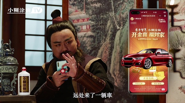 活動(dòng)以開蓋掃碼抽獎(jiǎng)為主要形式,消費(fèi)者購(gòu)買小糊涂仙指定酒品,開蓋掃碼即可抽取49999元購(gòu)車基金、50g虎年傳世金條、2g足金金條及海量微信現(xiàn)金紅包等。“開金喜 福到家”活動(dòng)在線下掃碼開獎(jiǎng),回饋消費(fèi)者的同時(shí),小糊涂仙于雙微平臺(tái)推出social短片《酒煮三國(guó)》,以三國(guó)時(shí)代為背景,結(jié)合產(chǎn)品人群與活動(dòng)賣點(diǎn),巧妙地將“開金喜 福到家”活動(dòng)的核心內(nèi)容傳遞給消費(fèi)者,用古風(fēng)爆梗玩出活動(dòng)新花樣,從滿屏的春節(jié)營(yíng)銷熱潮中突圍。