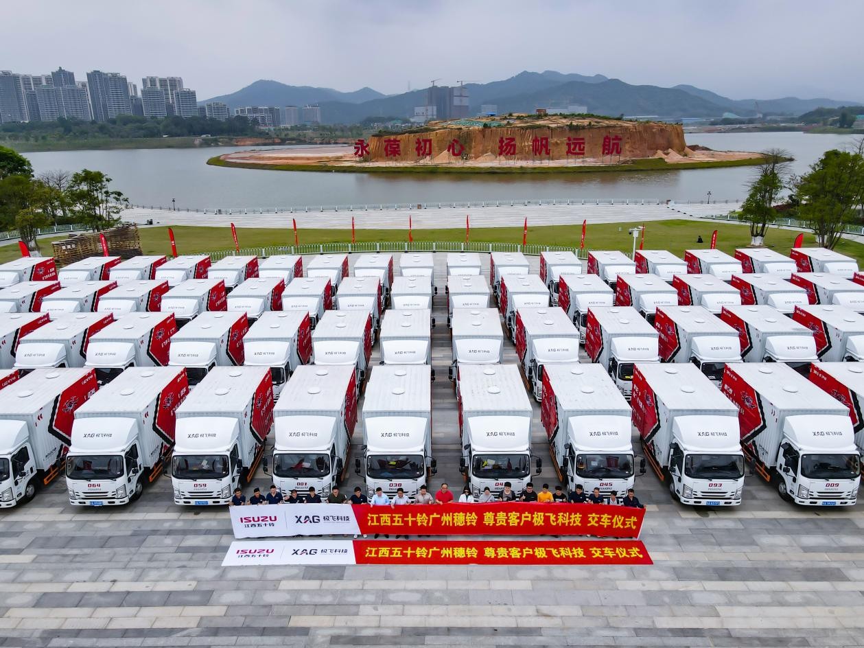 3月22日,隨著指揮人的一聲發號指令,112臺江西五十鈴翼放ES7從廣州中新知識城公園浩浩蕩蕩出發,駛向它們的新家——極飛科技公司總部,踏上智慧農業的征途。