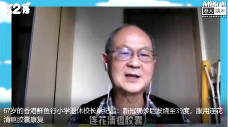 香港食物及衛生局局長陳肇始表示,在第五波的抗疫戰中,中醫藥全方位廣泛深度參與,在疫情的預防、治療以至復康的全過程中,發揮了重大作用。不少居民也在網絡上曬出他們在中醫藥幫助下恢復健康的經歷。疫情暴發后,香港上水區鄉事委員會主席、北區區議員侯志強不幸感染,當時各處急癥室隔離設施不足,他只好選擇居家隔離,并定時服用連花清瘟膠囊,在五日后核酸檢測轉陰。在接受“港人講地”欄目直播采訪時,67歲的香港鮮魚行小學退休校長梁紀昌表示,他在3月1日不幸確診新冠肺炎,發燒至39度,居家隔離按時按量服用連花清瘟膠囊等藥物,治療6日后,兩次核酸檢測陰性,最終康復。