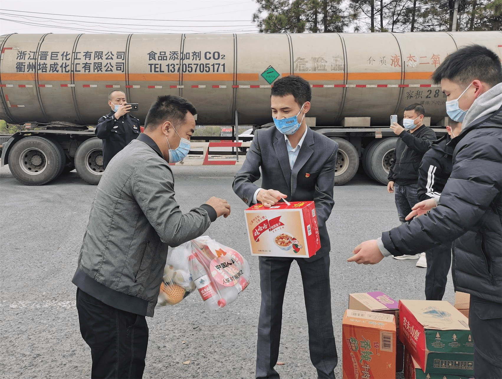 全市系統各分支機構積極為抗疫工作捐款捐物。衢江支公司總經理肖生濤與衢江交警大隊主要負責人赴部分重點交通管控卡口,為正在執勤的民警輔警及50多位受困衢州的外地司機送去多種食物和酒精、噴壺防疫物資,向奮戰在疫情防控一線的交警人員表達關愛和支持。江山支公司全體員工發起 “抗擊疫情愛心捐款”8000元,交到江山市慈善總會,用于購置疫情防控物資。