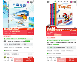 據了解,自4月20日第三季“多多讀書月”啟動以來,科普百科、藝術繪本、兒童文學等多種類型的童書是最受歡迎的拼單商品之一,包括DK兒童百科全書系列、世界兒童文學名著繪本、迪士尼雙語閱讀讀本、《笑貓日記》系列等熱門童書被“寶媽”們在多個社交平臺中分享。