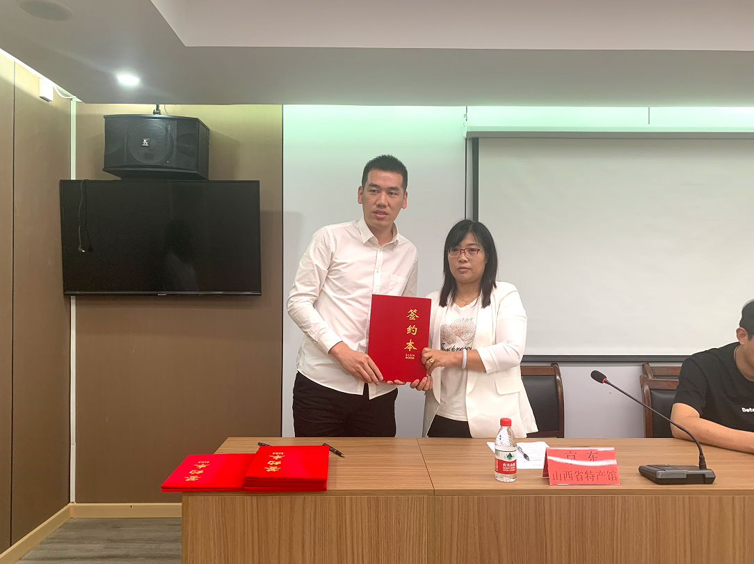 此次產銷對接會上,浮山縣康杰副食品有限公司郭杰、山西堯田農業科技股份有限公司張振東以及浮山縣神山土特產品加工有限公司李準作為農產品企業代表上臺做重點推介。對接會現場專門設置了浮山農產品展示區,便于能近距離感受和體驗浮山的特色農產品,現場洽談對接氛圍熱烈,隨后京東特產館負責人代表京東平臺與到場的13家企業簽訂產銷合同,達成戰略合作協議。
