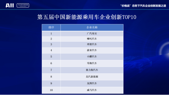中國汽車(乘用車)企業創新排行榜之自主企業TOP10