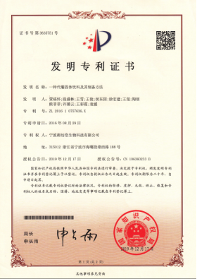 國家發明專利證書-肽素乳固體飲料及其制備方法