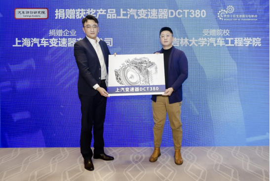 在獲獎名單正式揭曉后,上汽變速器有限公司向吉林大學汽車工程學院捐贈了獲獎的上汽變速器DCT380用于教研,助力了汽車產業創新人才培養和學術研究。