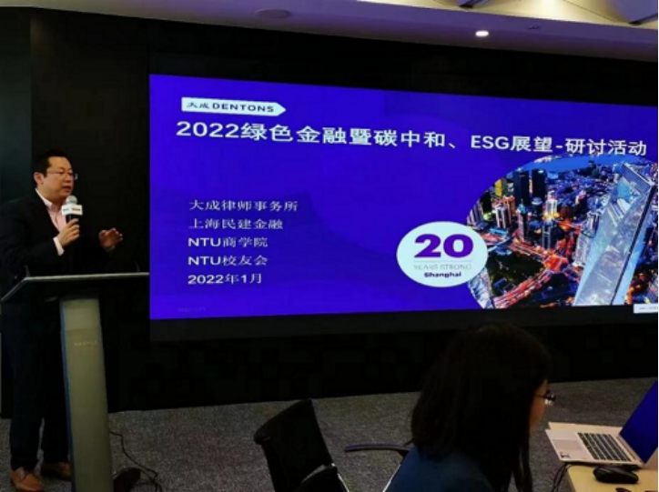 2022年1月15日,大成(上海)律師事務所聯合中金財富、民建上海金融工委、NTU商學院校友,共同舉辦“2022綠色金融暨碳中和、ESG展望研討活動”。