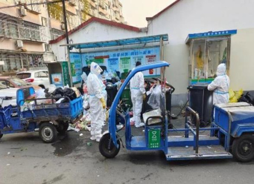 11月9日,果園新里北區閉環內職工對管轄區的垃圾桶站進行集中清運,發現甲區一號桶站無人清理,此桶站雖然不在心連心物業管轄范圍,但為了封控區內環境安全,心連心物業職工主動承擔起封控區內所有垃圾桶站的清理和運輸工作。