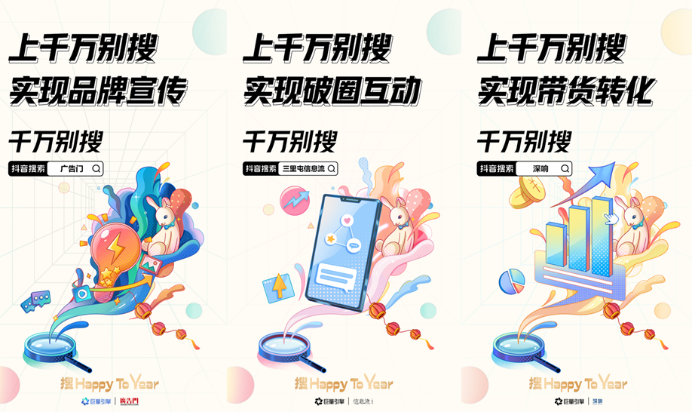 無論是短期引爆聲量影響,還是長期助攻經(jīng)營轉(zhuǎn)化,「千萬別搜」上線以來取得的出色效果,無不驗(yàn)證了占位巨量引擎“啟發(fā)式搜索”的重要意義,具體而言,即能夠充分幫助品牌收獲長期占位、興趣收口、破圈互動三大營銷增益價(jià)值。
