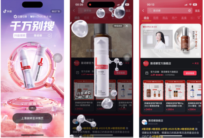 銷售轉(zhuǎn)化始終是品牌的終極目標(biāo),品牌通過電商品專與熱榜、開屏等聯(lián)動,在直播或非直播兩種場景下,可以實(shí)現(xiàn)品牌信息的多維展示,以及直播間的短鏈引流,促成更快速、直接的轉(zhuǎn)化。