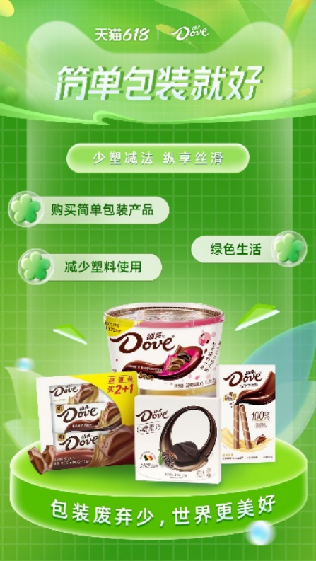 旗下德芙部分可持續包裝產品上線天貓618“簡單包裝就好”專區