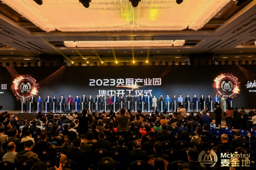 對已簽約的麥金地產業園,會議當天舉辦2023年集中開工儀式,在近千位嘉賓見證下,30位項目代表齊上臺共同按下項目啟動鍵,麥金地將全新的中央廚房及食品加工新技術應用到各項目,全面引領當地的食品加工行業、餐飲服務業向規范化、標準化、規模化和數智化進程。
