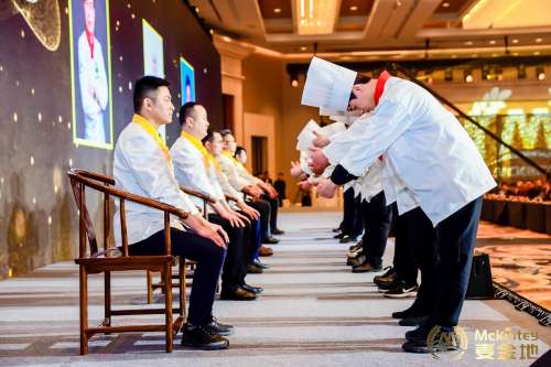 麥金地是一家先建立文化體系再建立管理體系的公司,以尊師重道、廚藝傳承傳承為宗旨創立“廚藝促進會”,以“仁義禮智信”儒家文化為底蘊組建【麥金地精忠俱樂部】管理團隊,是麥金地集團一貫堅持的管理措施。會議第一章,舉行了廚藝促進會拜師儀式和精忠俱樂部入會儀式。